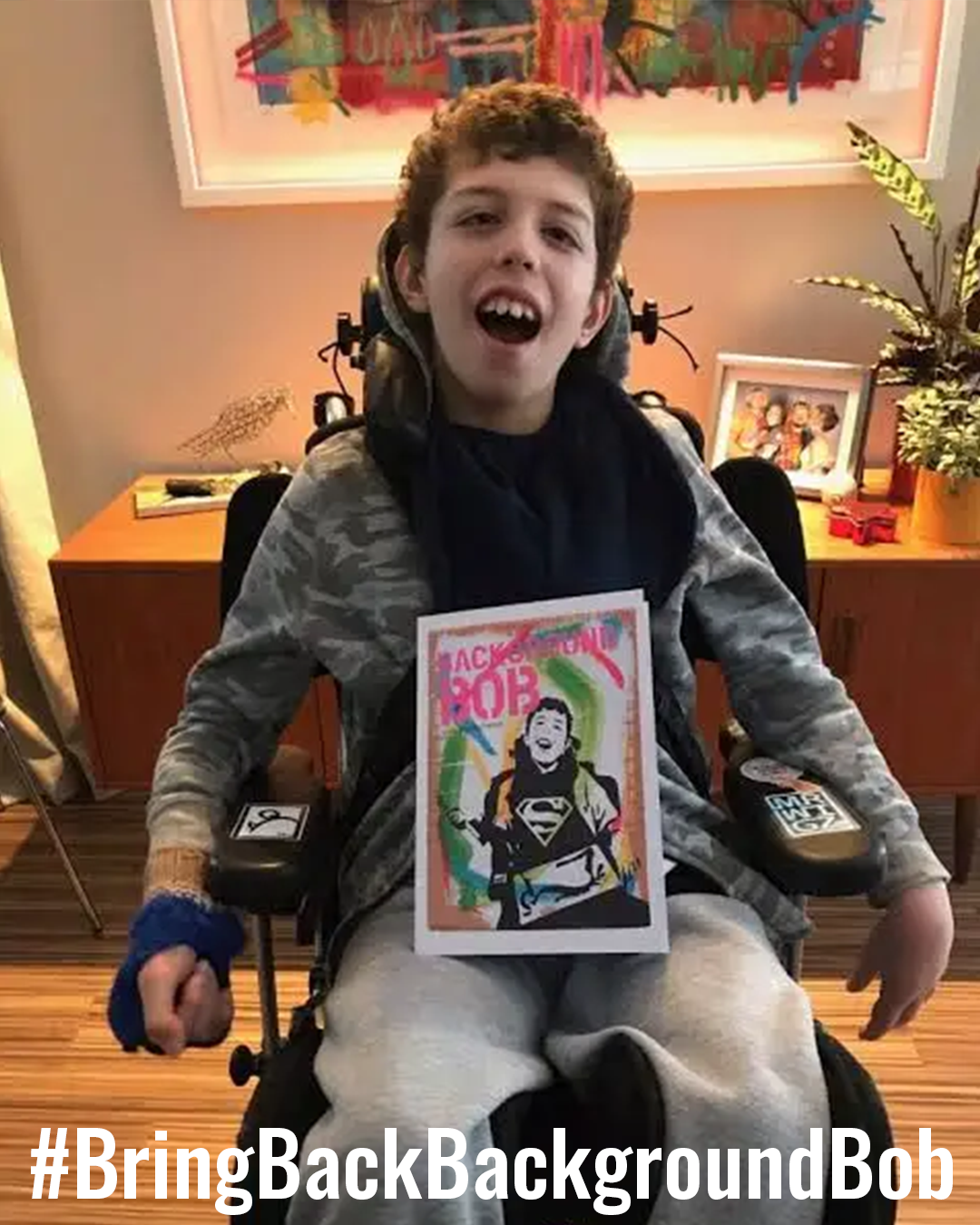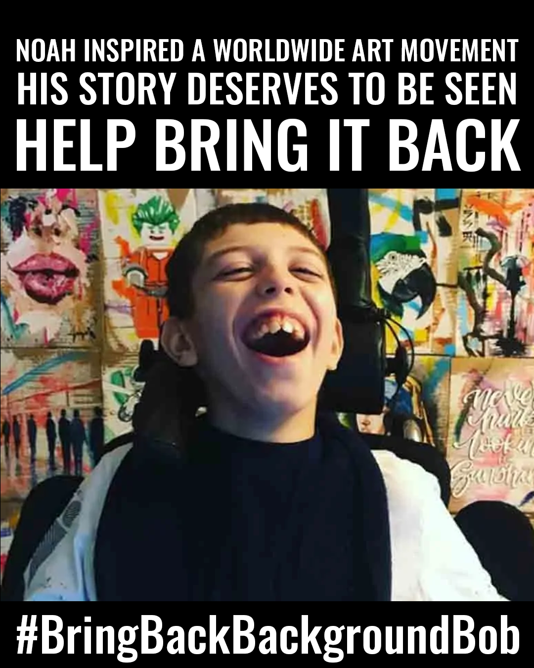 Background Bob was an art project from Noah Jones, a young disabled artist from Essex who inspired thousands of people around the world during lockdown and beyond.