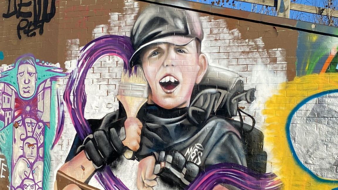 Noah painted colourful, abstract backgrounds with his dad, Nathan. Artists everywhere — including some of the biggest names in street art — added their own characters and creations on top. It grew into a global collaboration of over 750 artists.