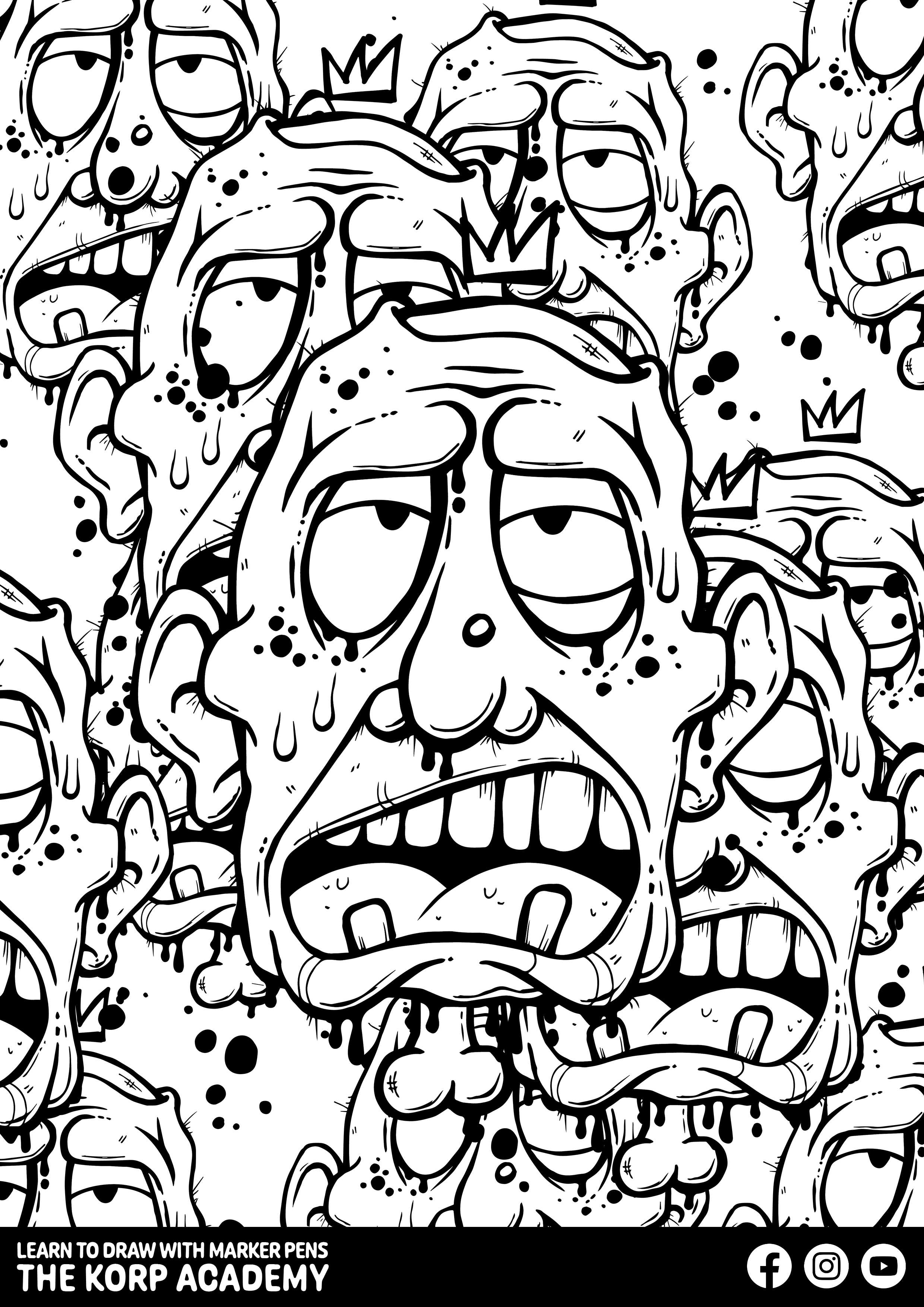 In 2021, I celebrated the first anniversary of the online Korp Academy by creating a large activity pack filled with coloring sheets based on artwork from our inaugural year. Now, I've decided to reintroduce it with even more content - 130 pages in total! These sheets showcase a retro style, before I started creating them digitally, like I do now. I thought you'd enjoy seeing them.
