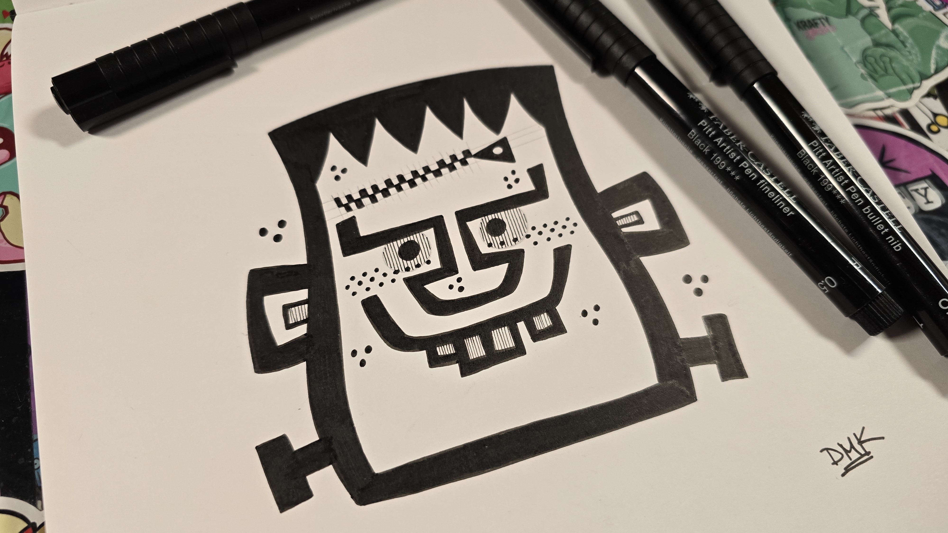 It’s based on a John Kelly Green Frankenstein piece—so you’ve got that heavy black, chunky outline doing most of the work, with barely any lines inside. That’s the whole point here: less detail, more impact.