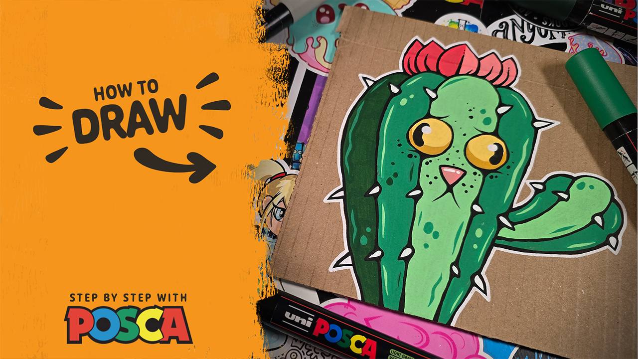 In this tutorial, we’re drawing a cactus plant with a cat face mashed into it.