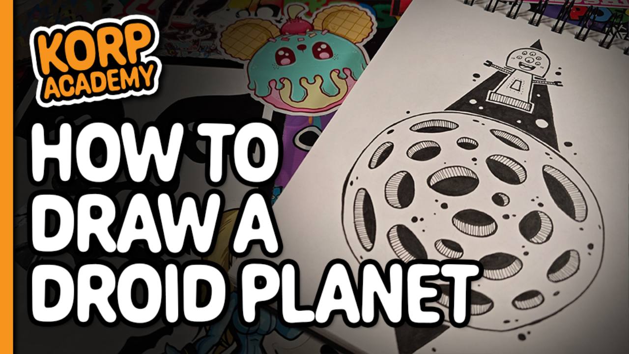 I love drawing planets like this which are heavily inspired by the work of Jim Bradshaw. I'll lay out 4 different droids for you to choose from and four different faces before moving onto the diamond background that gives the illusion of outer space without having to do too much colouring in.