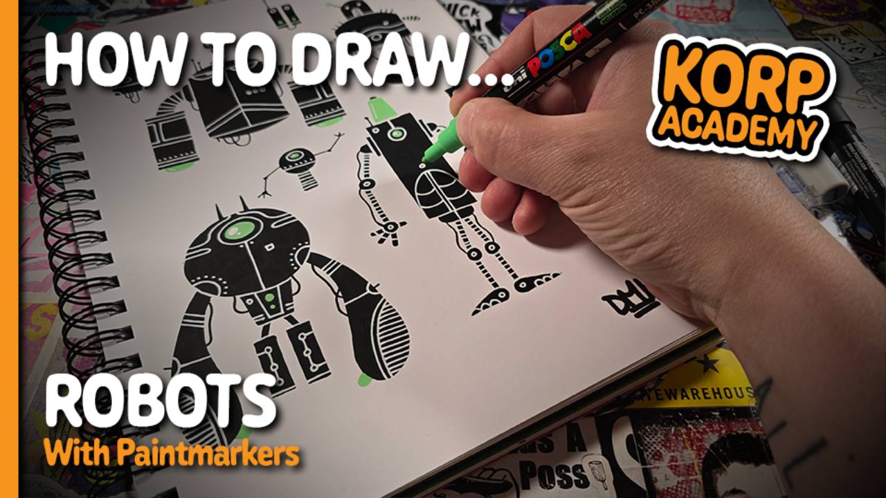 What I love about this style of drawing is how forgiving it can be, but that only happens if you really loosen up. Let me show you how to draw Robot Jones using just Posca Pens.