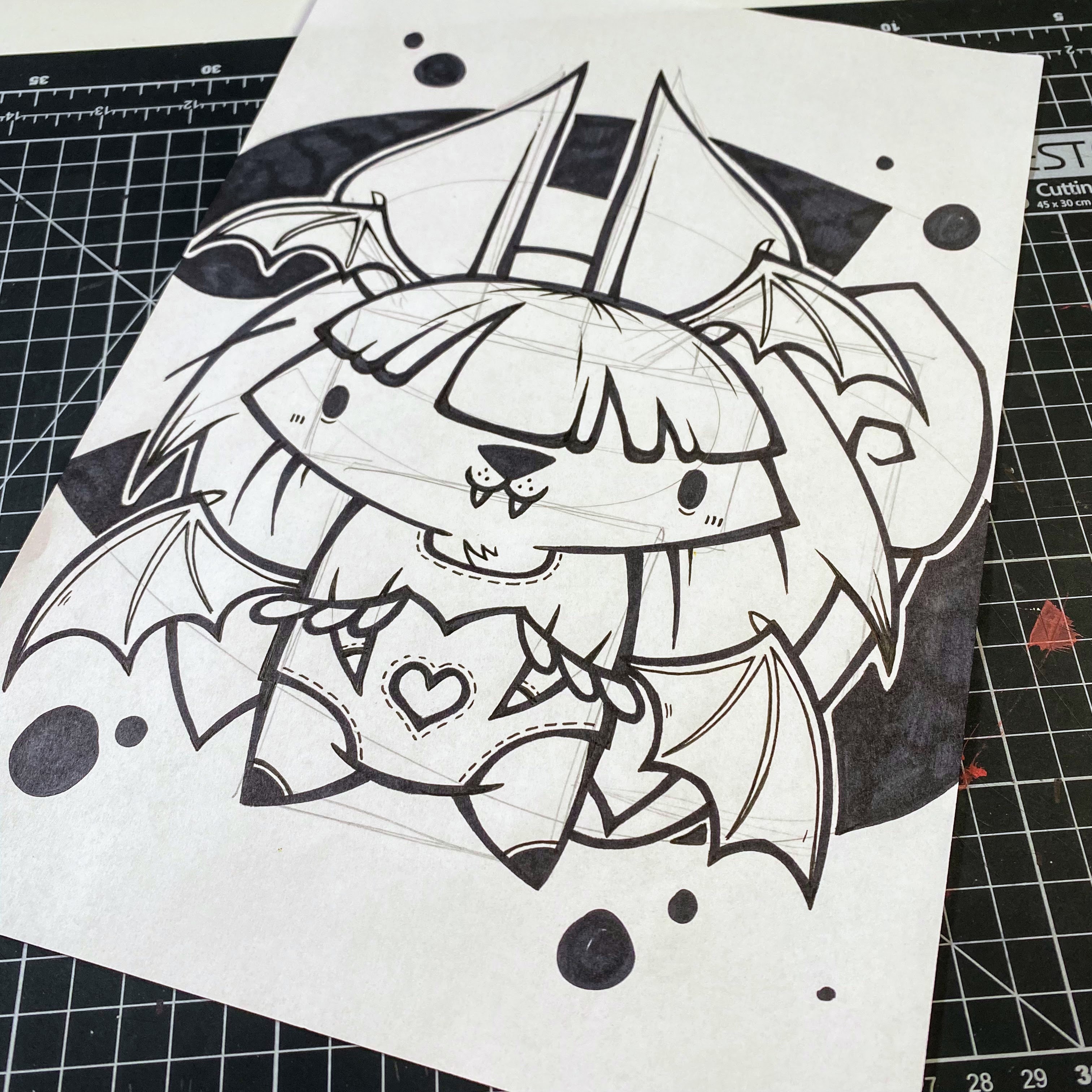 The big lesson in this tutorial is building a character from simple structure first, then layering the interesting bits on top. Rectangles, triangles, curves, then details. It’s also a good one for practicing spacing, because if you don’t leave yourself enough room, the wings and ears start fighting for space.