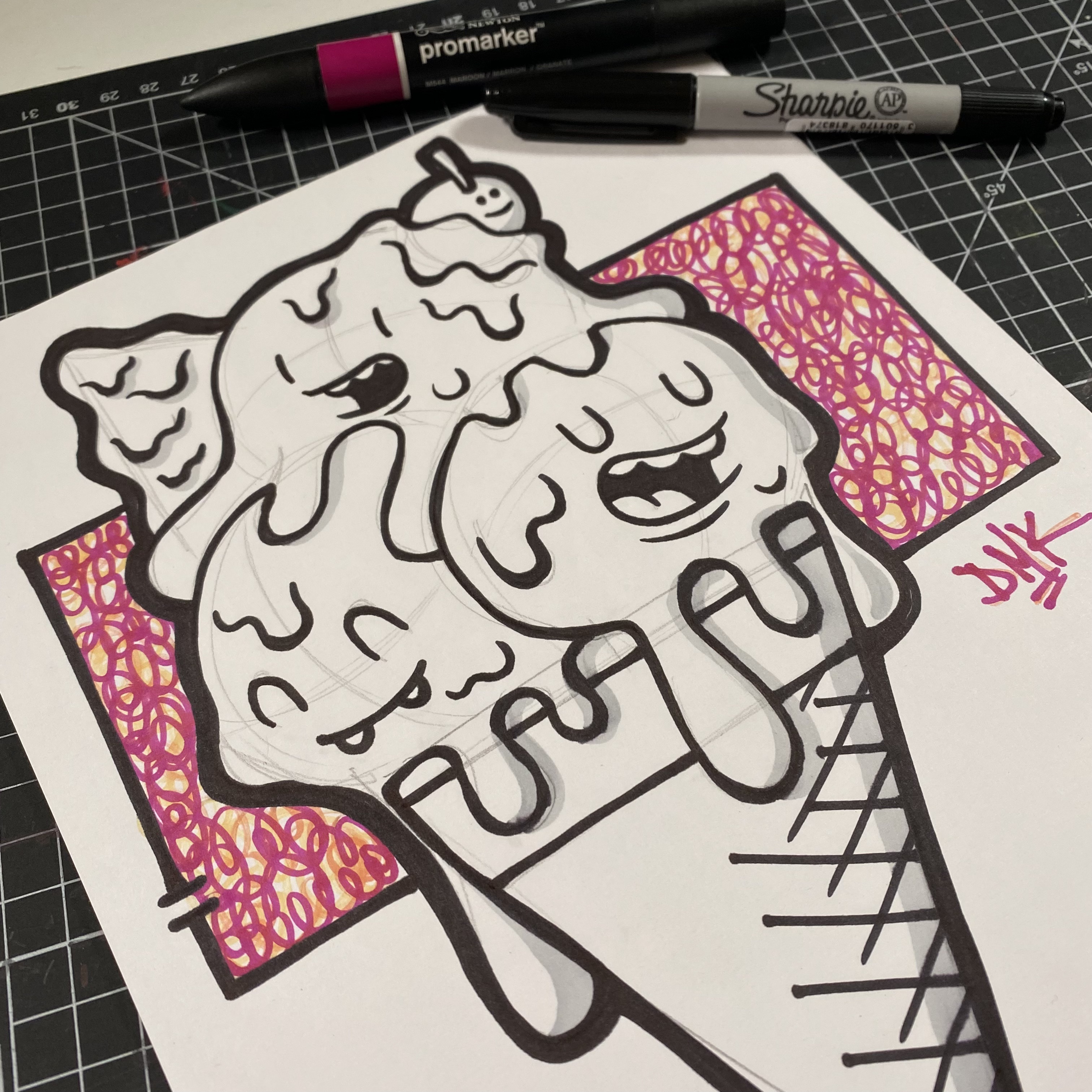 In this guest session with artist Uhoh, you’ll draw a stacked ice cream cone with faces, drips and loads of character.