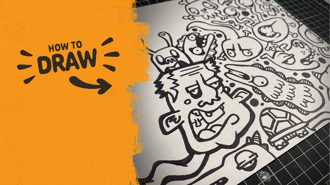 Guest artist Curtiscreationz takes over this session, showing how to build a full page of weird doodle characters using just a Sharpie.