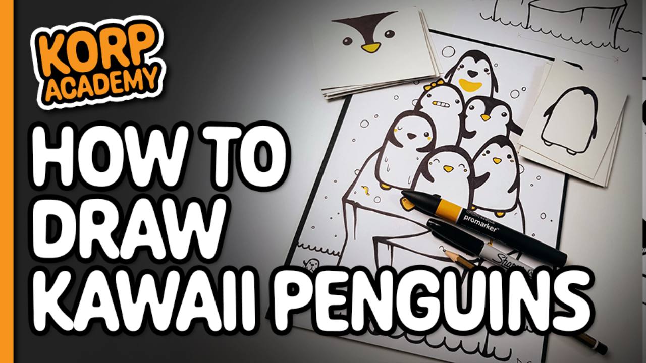 In this tutorial we use prompt cards and an accent colour to help us draw some kawaii style penguins.