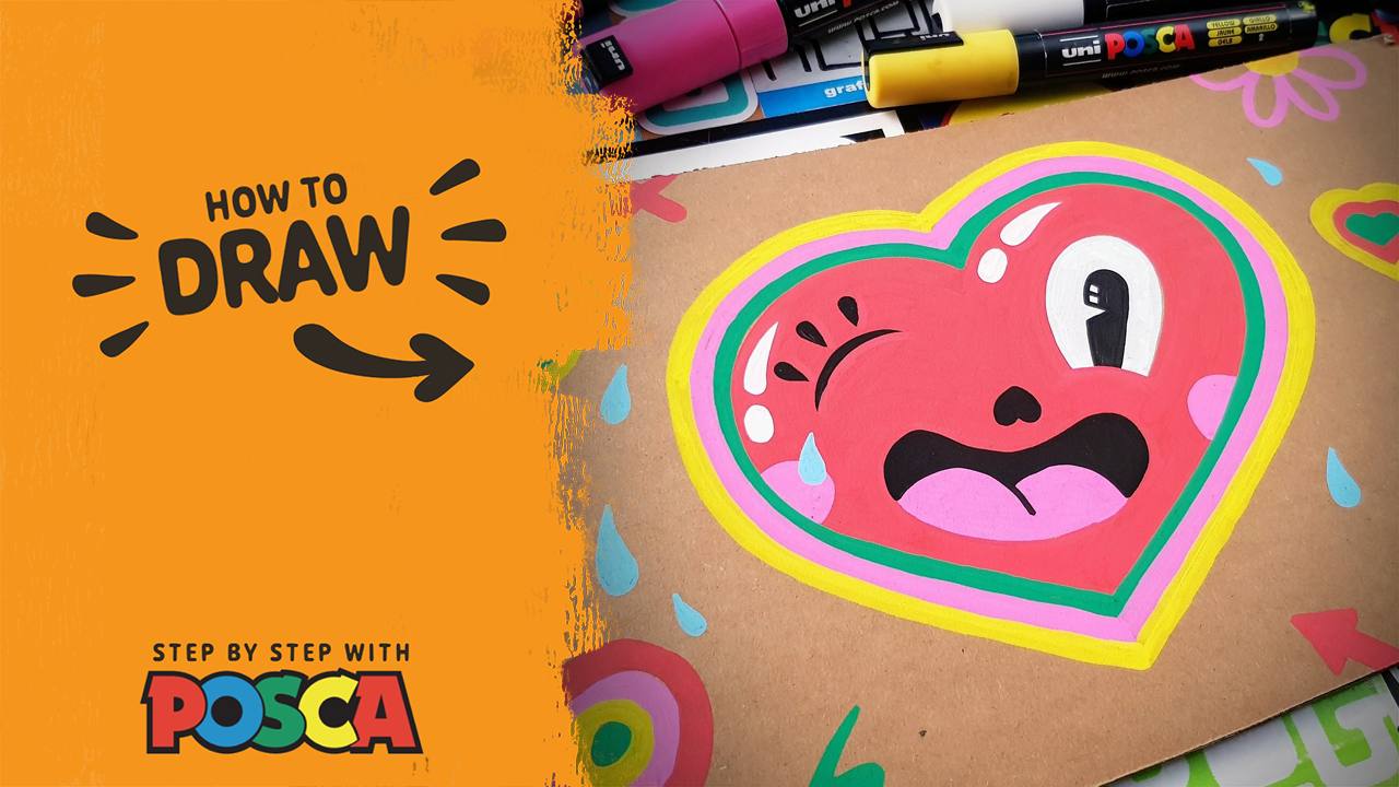 This is a simpler Hattie Stewart inspired one, focused on just the heart character.You’ll draw it straight in with Posca pens, add bold colour, then fill the gaps with extra shapes and symbols.